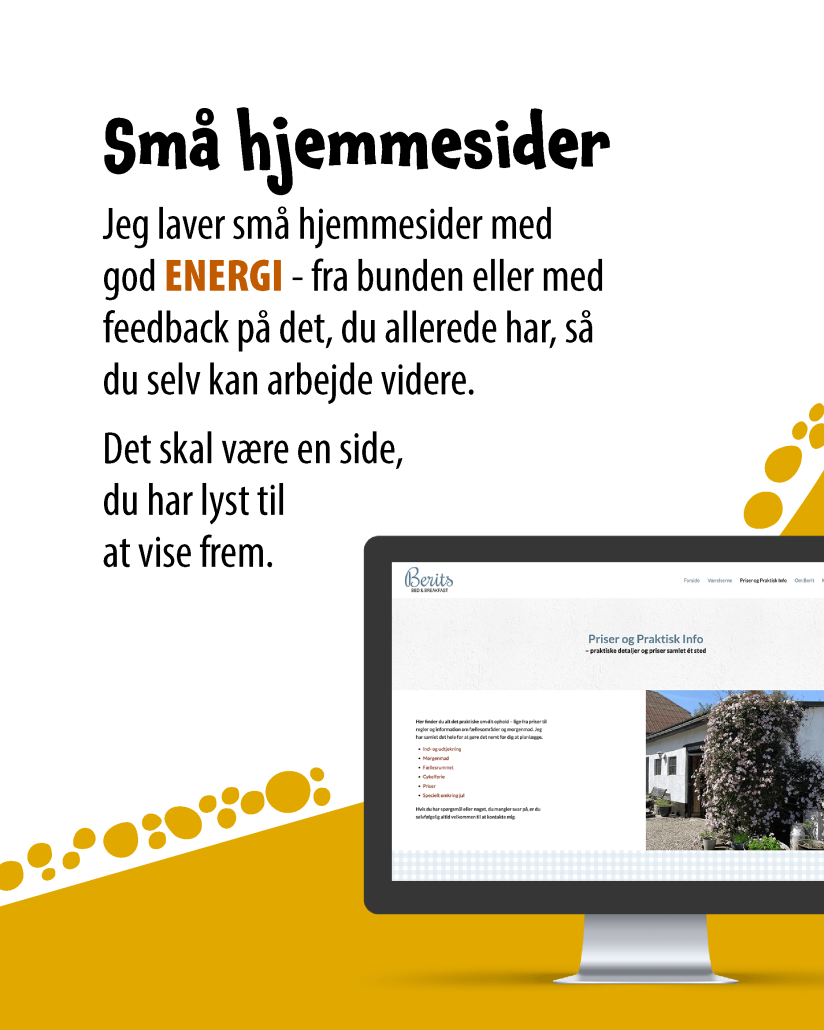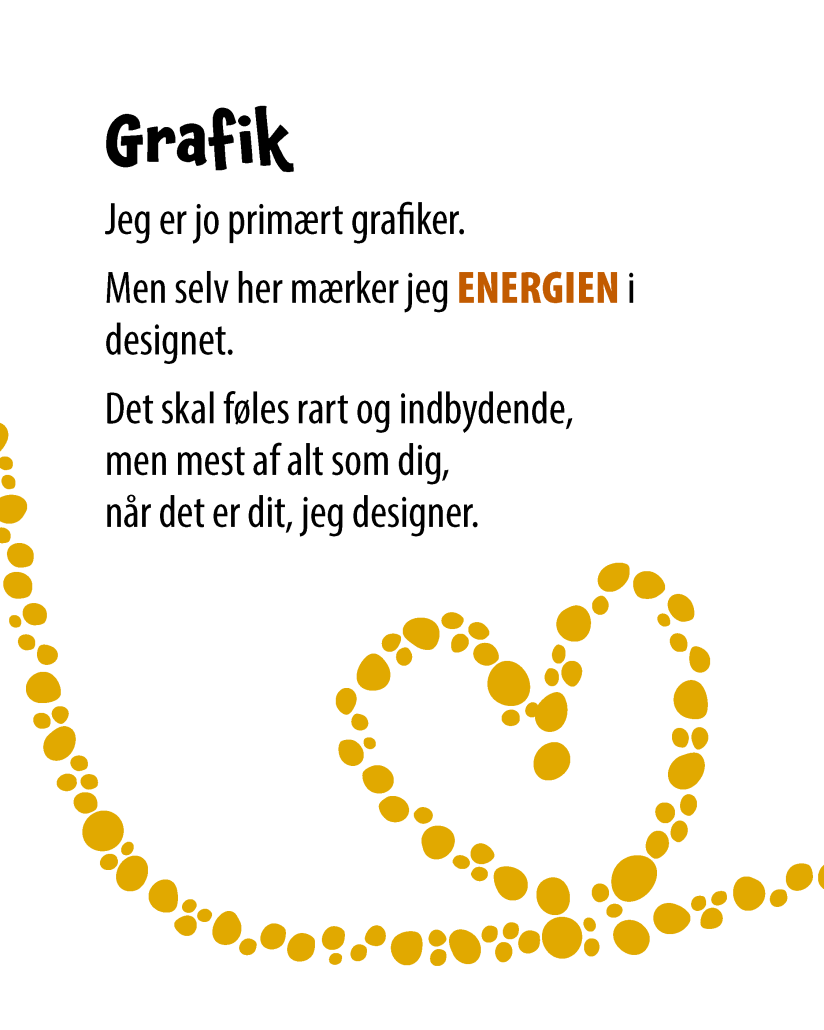 Gennem samtale og sparring får du indsigt i, hvad der føles rigtigt for dig, og vi finder sammen et visuelt udtryk og en dagligdag som virksomhedsejer, der føles godt. Søger du kreativ inspiration eller netværk, finder du det også her.